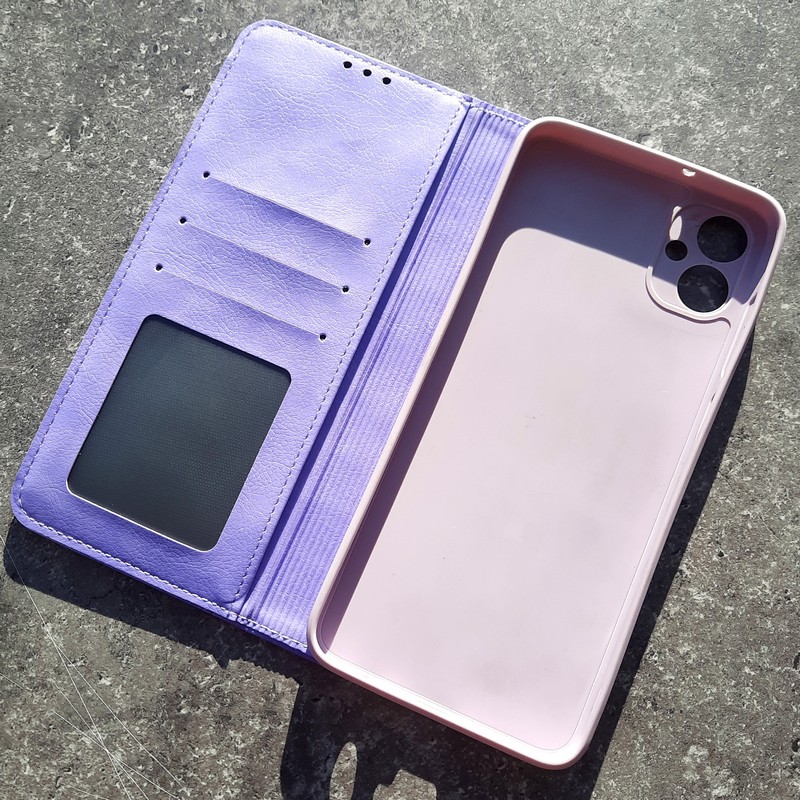 В чехле-книжке есть встроенный слоты под банковские карты, проездной или визитку.