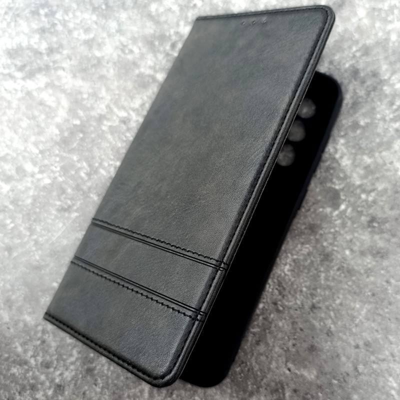 В чехле-книжке есть встроенный слоты под банковские карты, проездной или визитку.