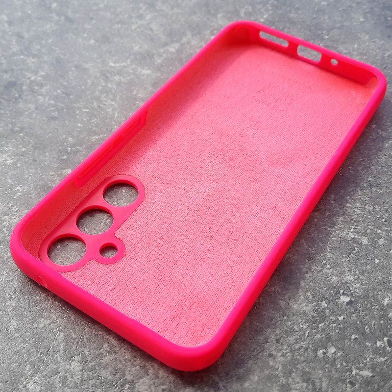 для Samsung A54 чехол, плотный силиконовый с микрофиброй неоново-розовый