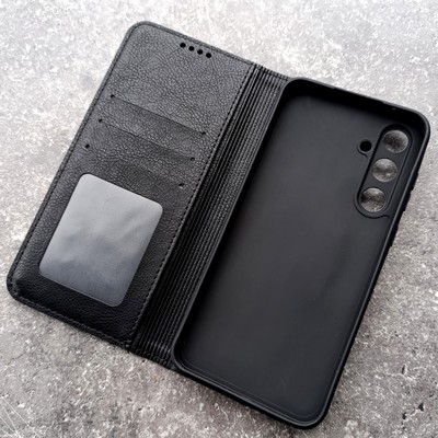 Чехол-книжка с силиконовым основанием для телефона Samsung A55, Creative Case ver.2, цвет черный.