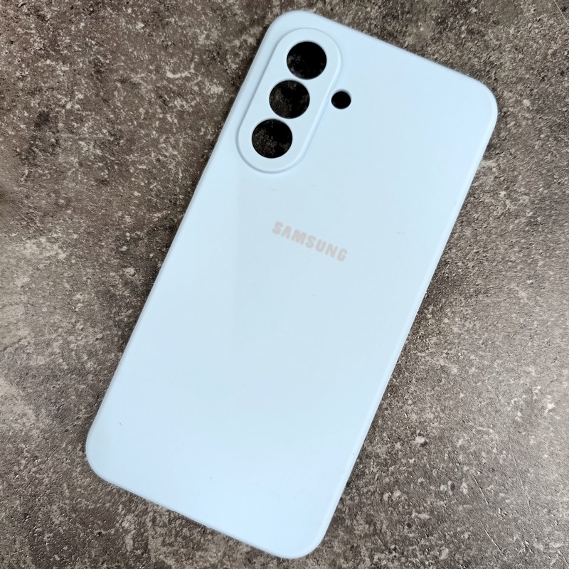 Чехол для Samsung A56 Silicone Case, с логотипом, голубой