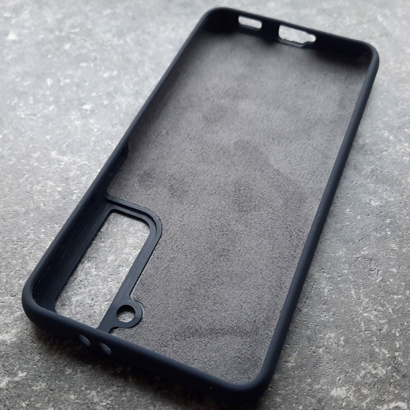 Наружная сторона накладки имеет софт тач покрытие. Приятное на ощупь, не боится отпечатков пальцев, в случае загрязнения легко чистится влажной салфеткой или тряпочкой с мылом.