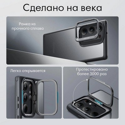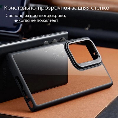 Чехол премиум качества с металлической подставкой (доп. защита камер) для телефона Samsung 23 Ultra, ESR, прозрачно-черный
