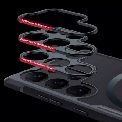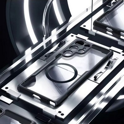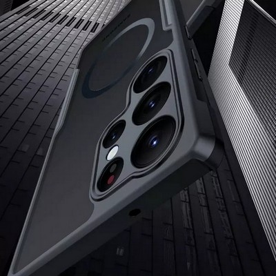 Комбинированный чехол (PC + TPU) для телефона Samsung S23 Ultra с поддержкой MagSafe, прозрачный с черным. Бренд XUNDD.