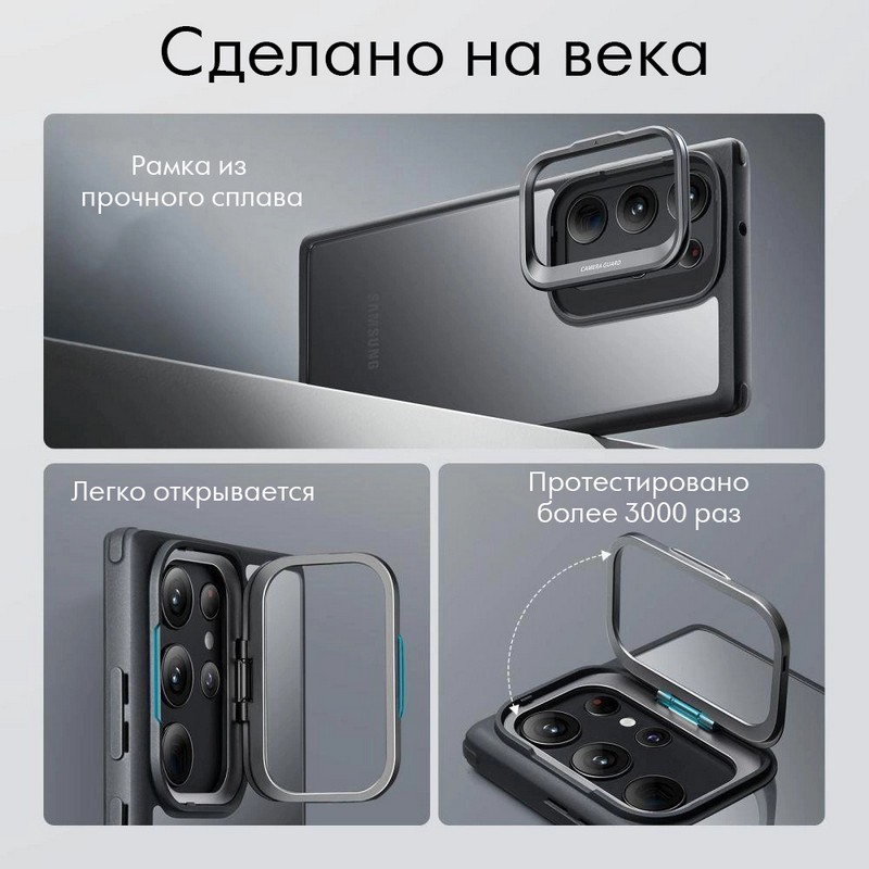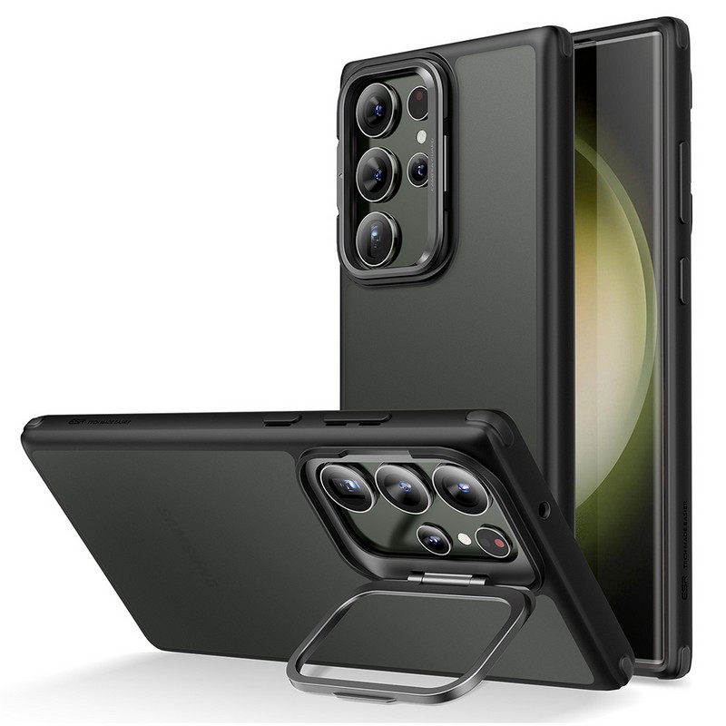 Чехол премиум качества с металлической подставкой (доп. защита камер) для телефона Samsung 23 Ultra, ESR, матово-черный