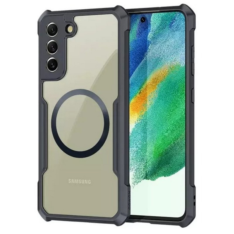 Комбинированный чехол (PC + TPU) для телефона Samsung S23 с поддержкой MagSafe, прозрачный с черным. Бренд XUNDD.
