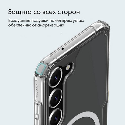Чехол с поддержкой MagSafe из поликарбоната с боковыми силиконовыми гранями (PC + TPU) для телефона Samsung S23, от известного бренда Nillkin, серия Nature TPU Pro Magnetic Case