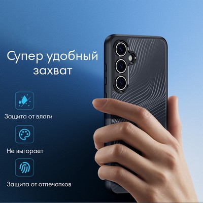 Узор плавных линий на матовом основании подчеркивает изящность чехла на Самсунг.
