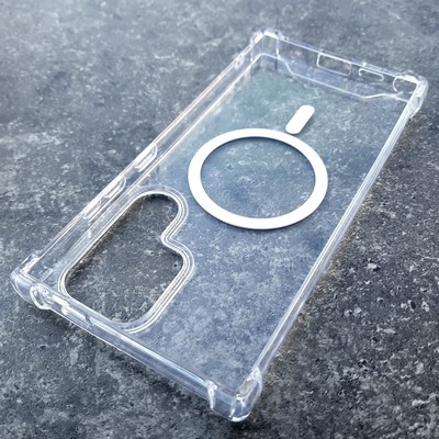Чехол из твердого поликарбоната с мягкими силиконовыми бортами и с армированными углами-бортиками, для телефона Samsung S24 Ultra, с поддержкой MagSafe прозрачный