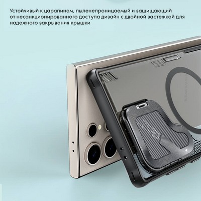 Чехол с крышкой камеры-подставкой для телефона Samsung S24 Ultra, от известного бренда Nillkin, серия Iceblade Prop Magnetic Case