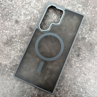 Чехол из поликарбоната с силиконовыми гранями для Samsung S24 Ultra Pixel PC Gray