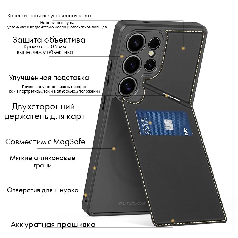 Чехол c MagSafe и картхолдером для телефона Samsung S25 Ultra от бренда Dux Ducis. Серия Rafi II.