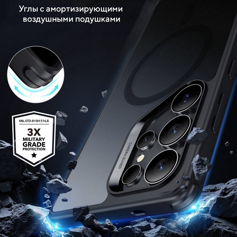 Гибридный тонированный чехол для смартфона Samsung S25 Ultra с поддержкой беспроводной зарядки и аксессуаров MagSafe