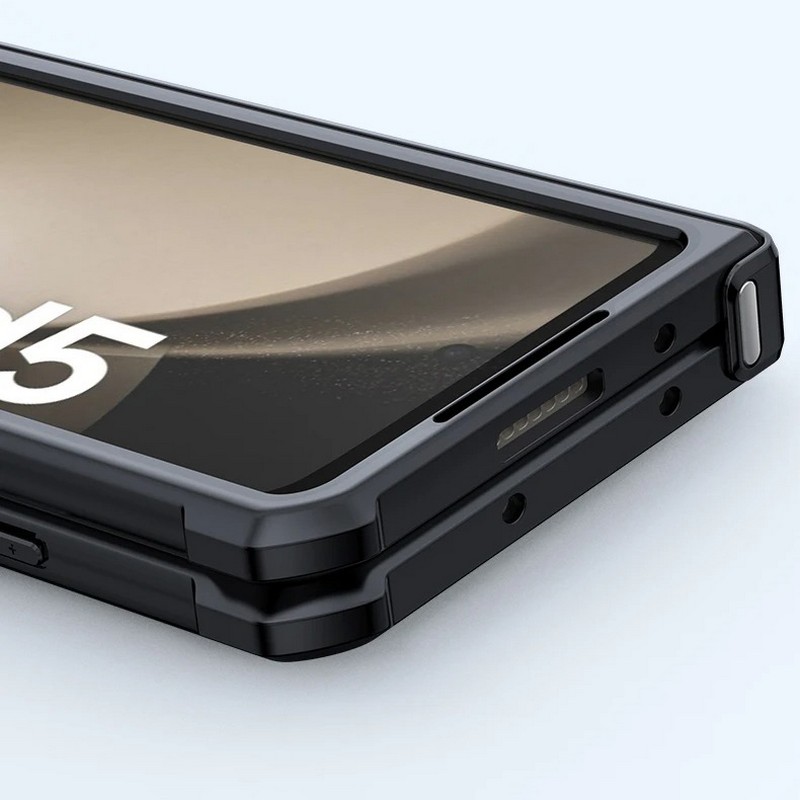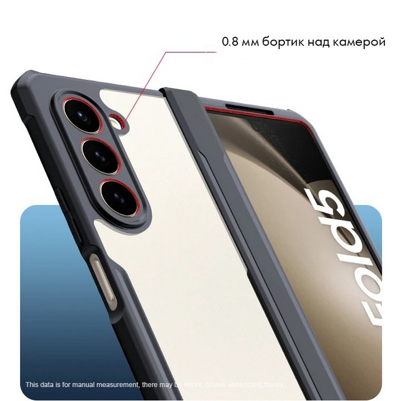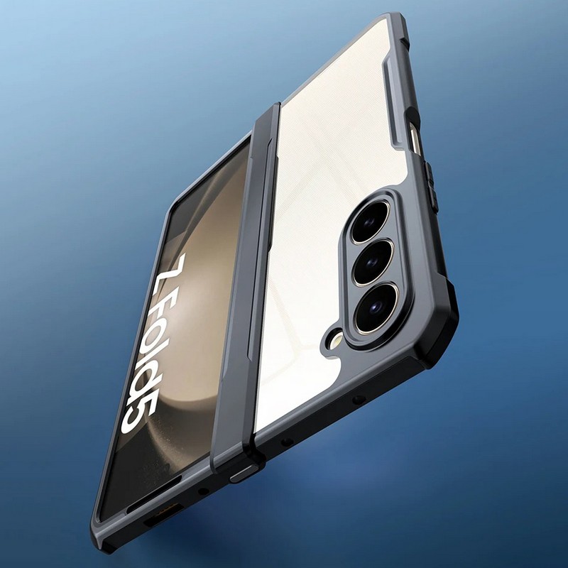 Комбинированный чехол (PC + TPU) для телефона Samsung Galaxy Z Fold 5, прозрачный с черными гранями. Бренд XUNDD.