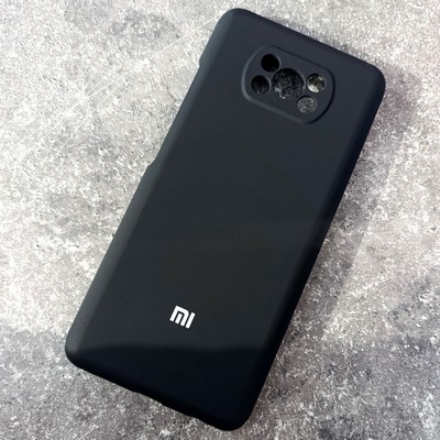 Чехол для Xiaomi Poco X3, Silicone Case, с логотипом, черный