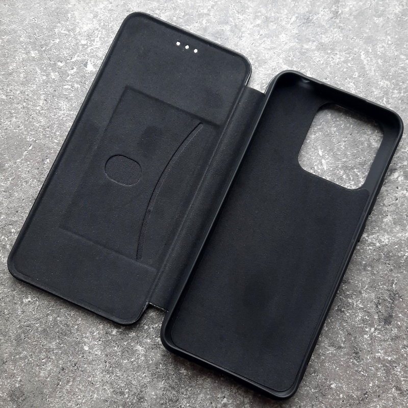 В чехле-книжке есть встроенный слот под банковскую карту, проездной или визитку.