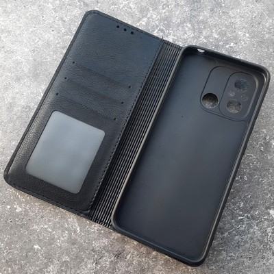 Чехол-книжка с силиконовым основанием для телефона Xiaomi Redmi 12C, Creative Case, цвет черный.