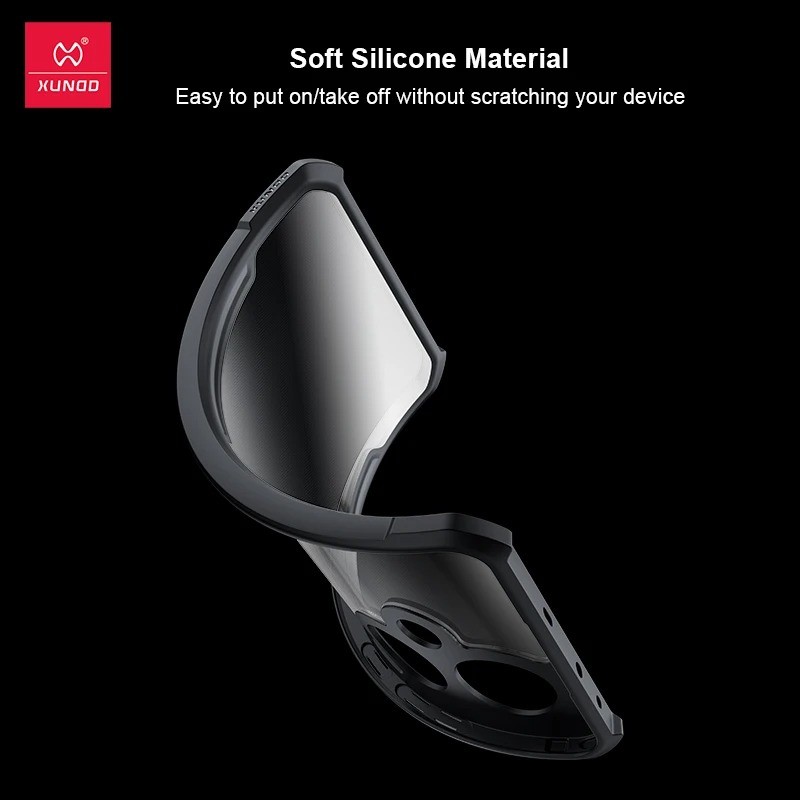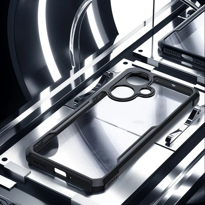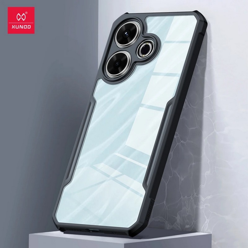 Комбинированный чехол (PC + TPU) для телефона Xiaomi Redmi 13, прозрачный с черными гранями. Бренд XUNDD.