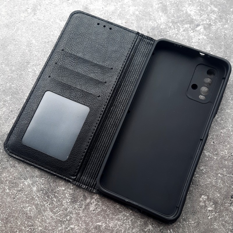 Чехол-книжка с силиконовым основанием для телефона Xiaomi Redmi 9T, Creative Case, цвет черный.