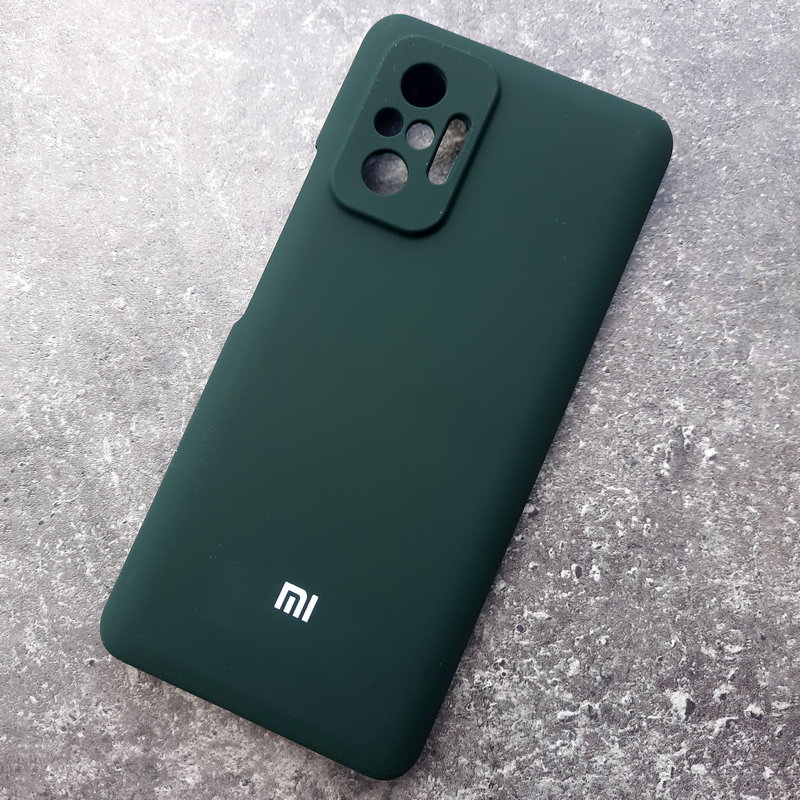 Редми Нот 10 про, силиконовый чехол с логотипом, темно-зеленый