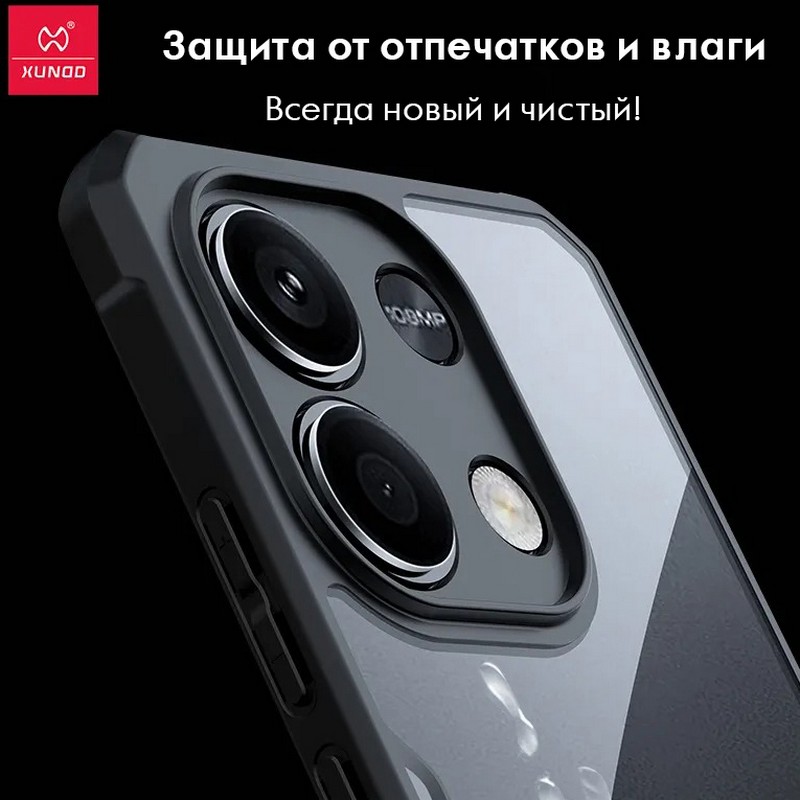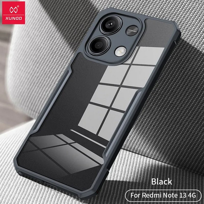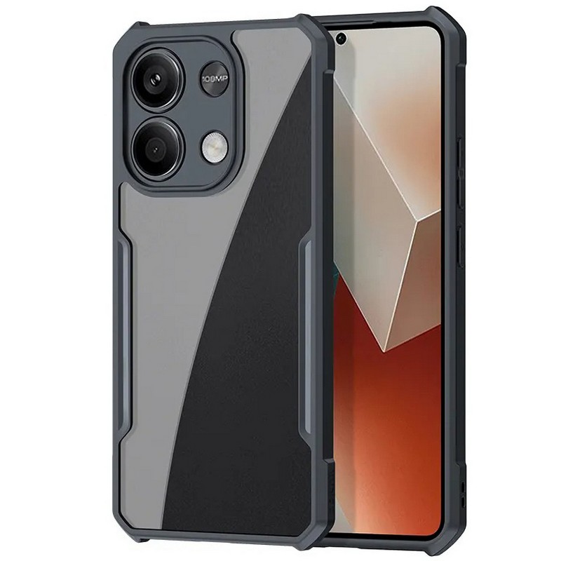 Комбинированный чехол (PC + TPU) для телефона Xiaomi Redmi Note 13 4G, прозрачный с черными гранями. Бренд XUNDD.