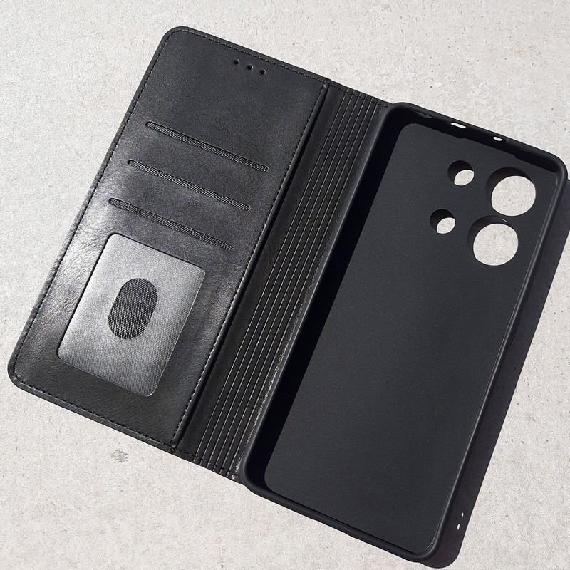 Чехол-книжка с силиконовым основанием для телефона Xiaomi Redmi Note 13 4G, Creative Case ver.2, цвет черный.