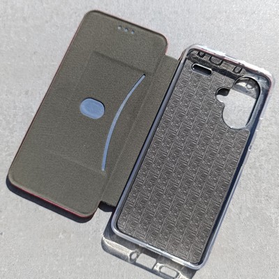 В чехле-книжке есть встроенный слот под банковскую карту, проездной или визитку.