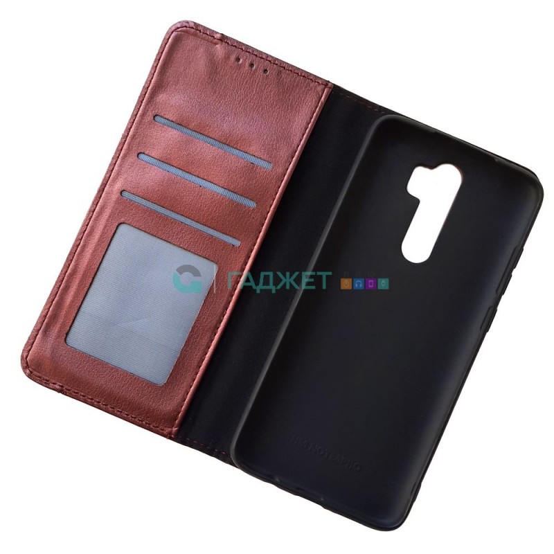Чехол-книжка с силиконовым основанием для Xiaomi Redmi Note 8 Pro, бордовый