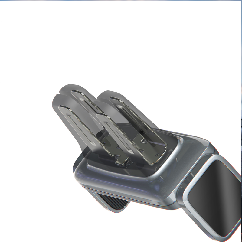 Компактный аксессуар для крепления сотового телефона на вентиляционную решетку в автомобиле. Двойной зажим надежно фиксирует держатель. Простая раздвижная конструкция.