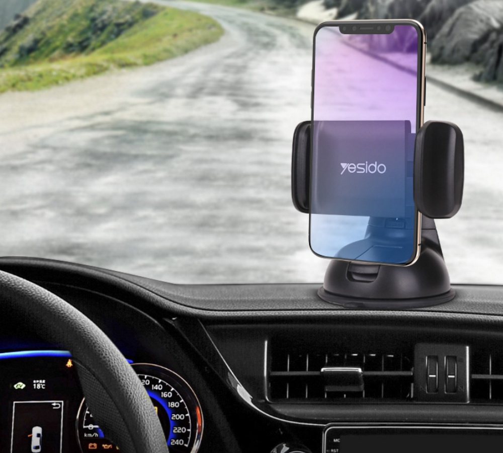 Компактный автодержатель для телефона на торпедо автомобиля.