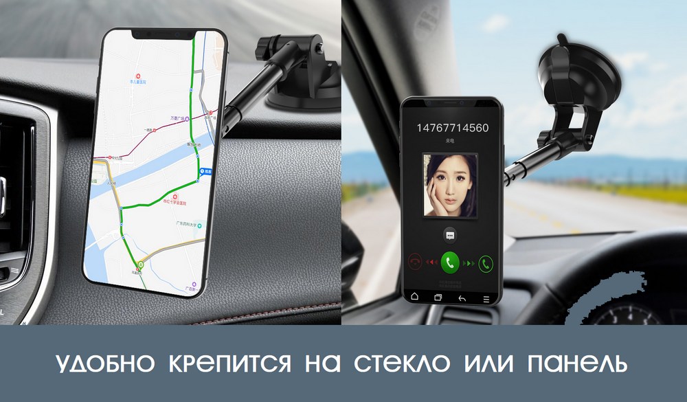 Универсальный вариант крепления телефона в автомобиль. Такой держатель позволяет расположить телефон в максимально удобном для вас месте. Присоска легко крепится на панель или лобовое стекло, а в случае необходимости можно всегда поменять местоположение автодержателя.
