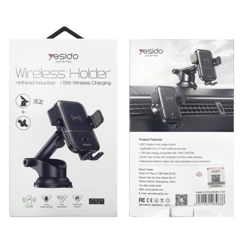 Держатель в машину Yesido C121, с беспроводной зарядкой