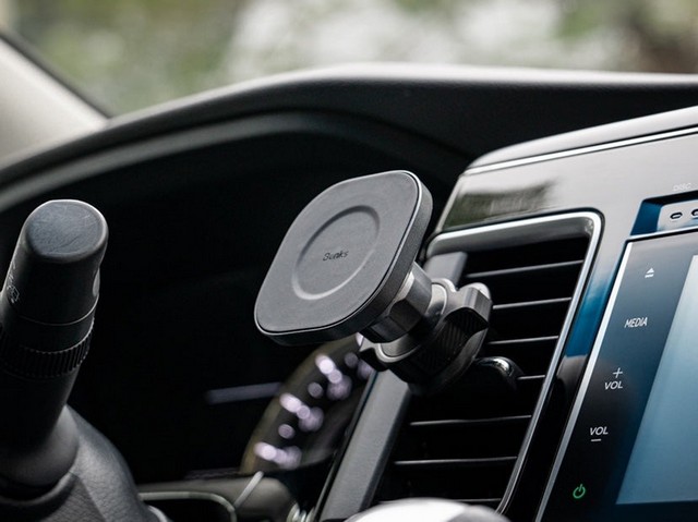 Заряжайте свой iPhone 15/14/13/12 просто и безопасно в автомобиле с помощью беспроводного автомобильного зарядного устройства, совместимого с MagSafe, которое крепится к вентиляционному отверстию и работает в любой ориентации.