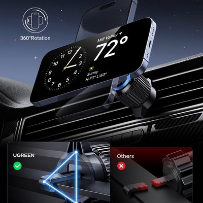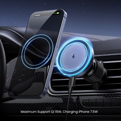 Зарядное устройство UGREEN оснащено мощной системой магнитной фиксации, которая надежно удерживает ваш смартфон во время движения, предотвращая его случайное падение или смещение.