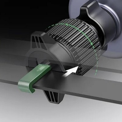 Держатель крепится к дефлектору воздуховода с помощью удобного, поворотного механизма.