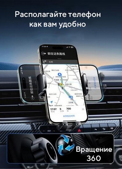 Автомобильный держатель телефона предназначен для удобного использования смартфона в автомобиле (навигация и др.)