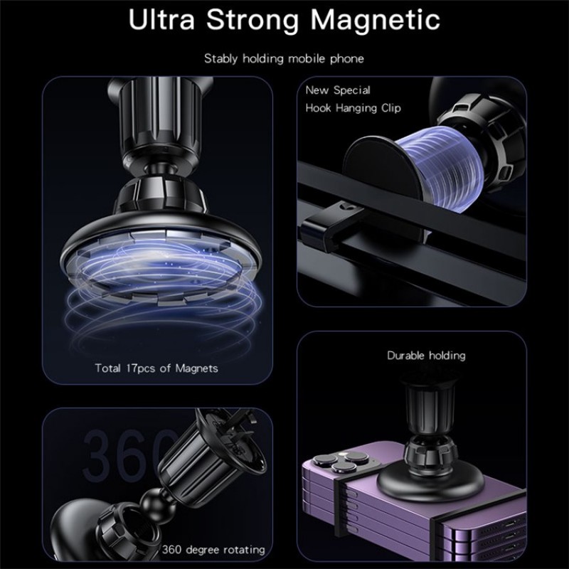 Держатель в машину выполнен в форме круга, идеально совместим с последними моделями айфона с магсейф.