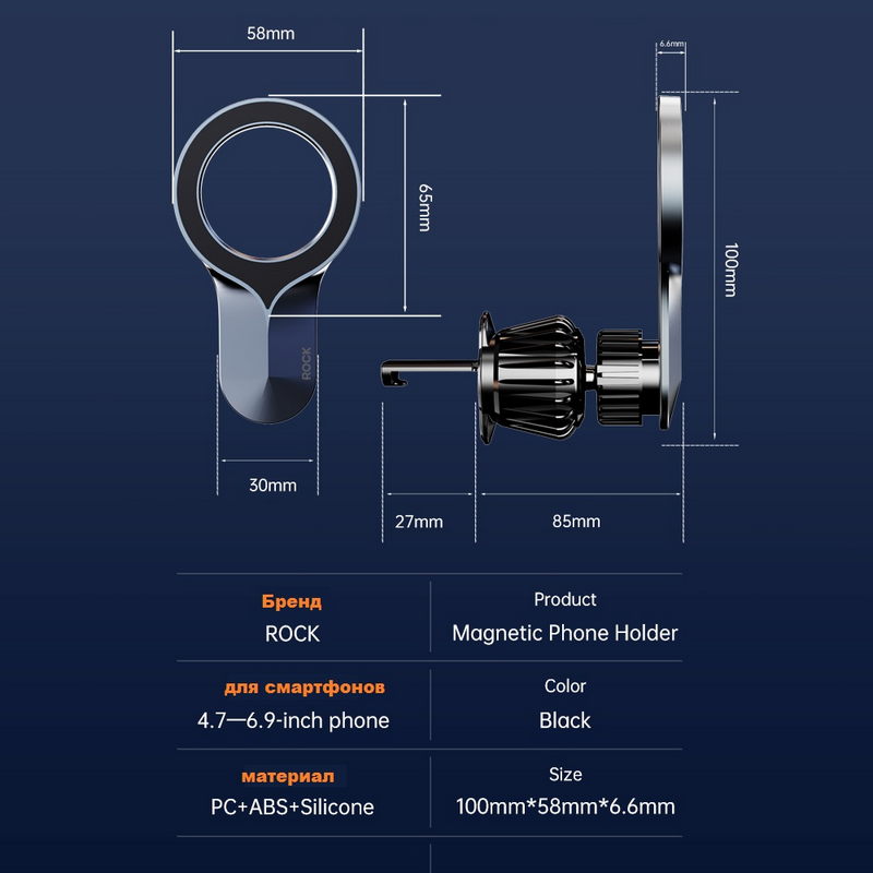 Стильный и удобный магнитный держатель для смартфона с креплением на вентиляционный дефлектор автомобиля