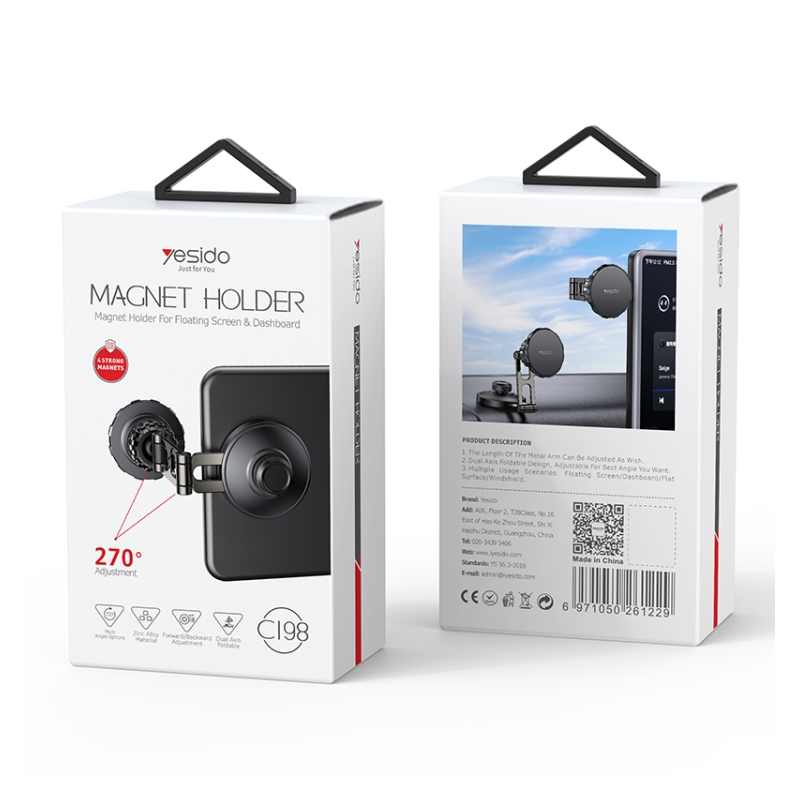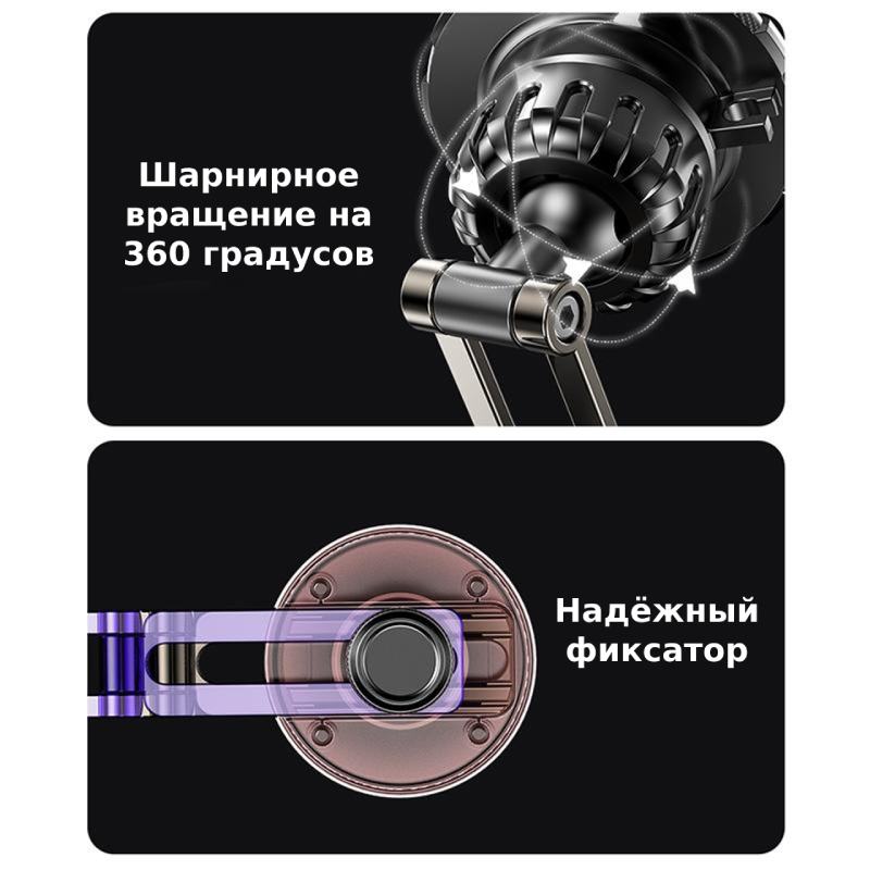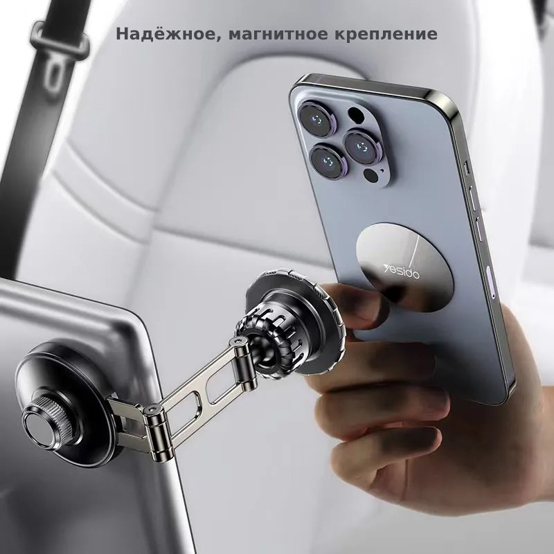 Держатель надёжно крепится на заднюю часть автомобильного монитора с помощью клейкой основы, не закрывая обзора для водителя. Магнит надёжно удерживает телефон, устройство не трясётся и не выпадает даже на ухабистой дороге. Шарнир с вращением на 360 градусов позволяет отрегулировать свой телефон на любой удобный угол.