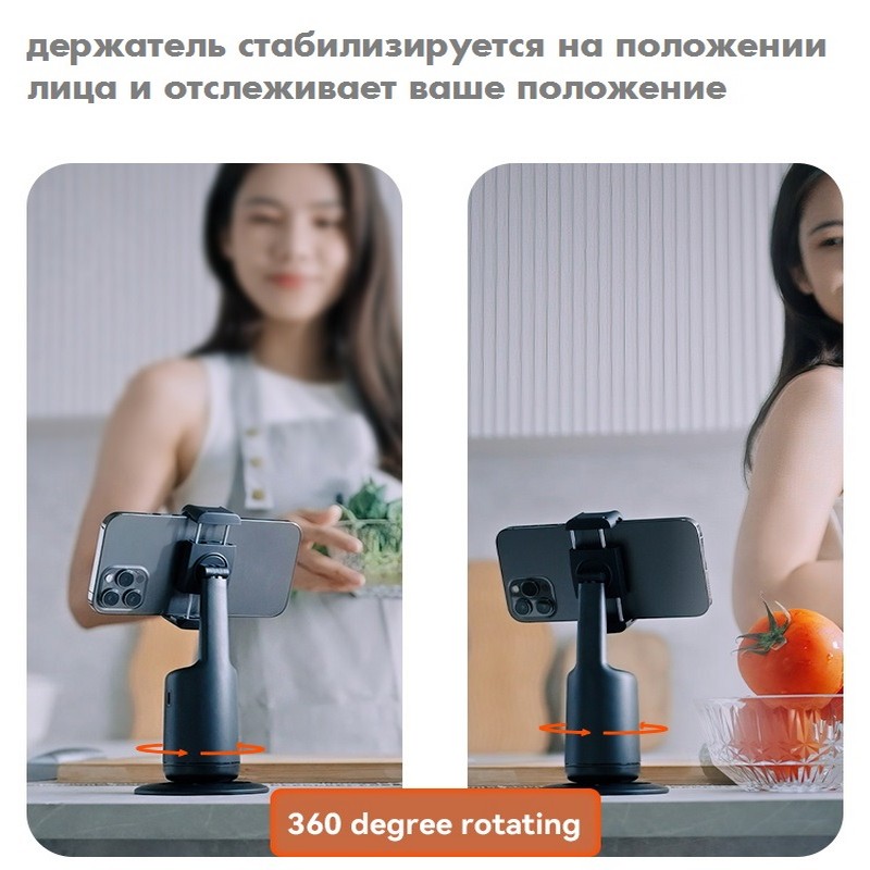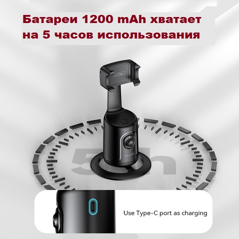 Просто закрепите смартфон в держатель, нажмите кнопку стабилизации и камера смартфона будет всегда нацелена на ваше лицо, даже если вы находитесь в движении. Встроенный аккумулятор позволяет использовать стабилизатор до 5 часов без подзарядки.