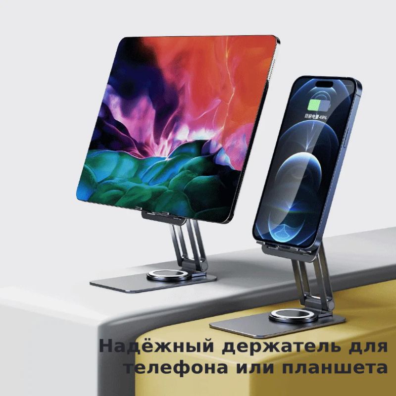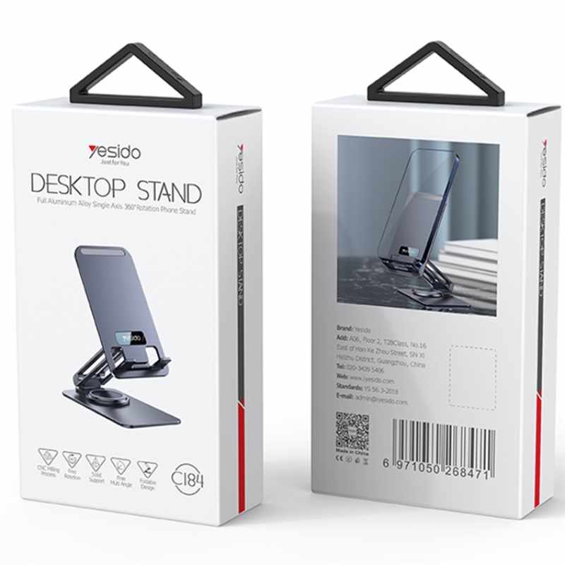 Держатель Yesido C184 надёжно стоит на поверхности благодаря алюминиевой ножке и выдерживает вес до 1.5кг. Держатель имеет силиконовые накладки безопасные для поверхностей телефона. Держатель удобно вращается на 360 градусов вокруг, для удобного расположения относительно пользователя. Во время использования удобно заряжать телефон, так как имеются удобные доступы ко всем портам и выходам.