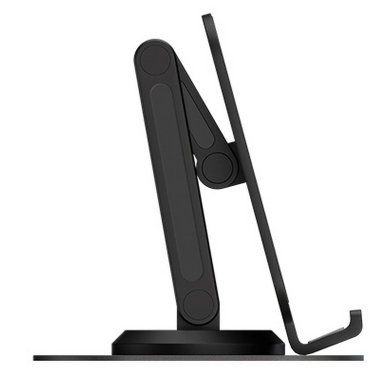 Модель имеет складную конструкцию, которая легко раскладывается, не занимаем много места на столе или во время переноски, а также позволяет менять угол наклона держателя для лучшего обзора.