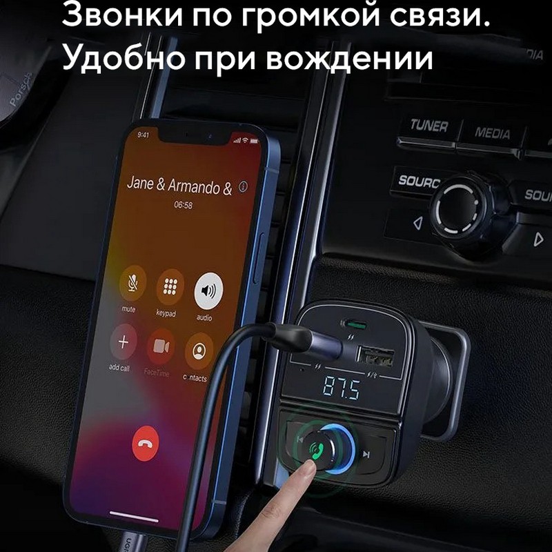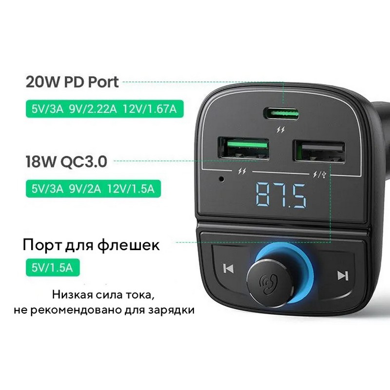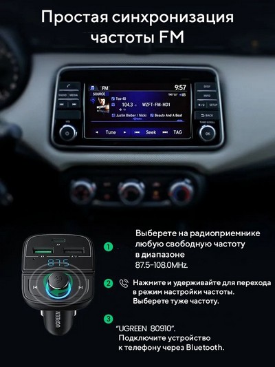 FM-модулятор с автомобильным ЗУ Ugreen CD229-80910 цвет: черный