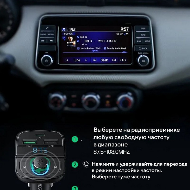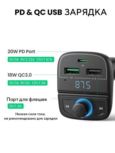 - Частотный диапазон FM-передачи: 87.5-108MHz(100KHz)
