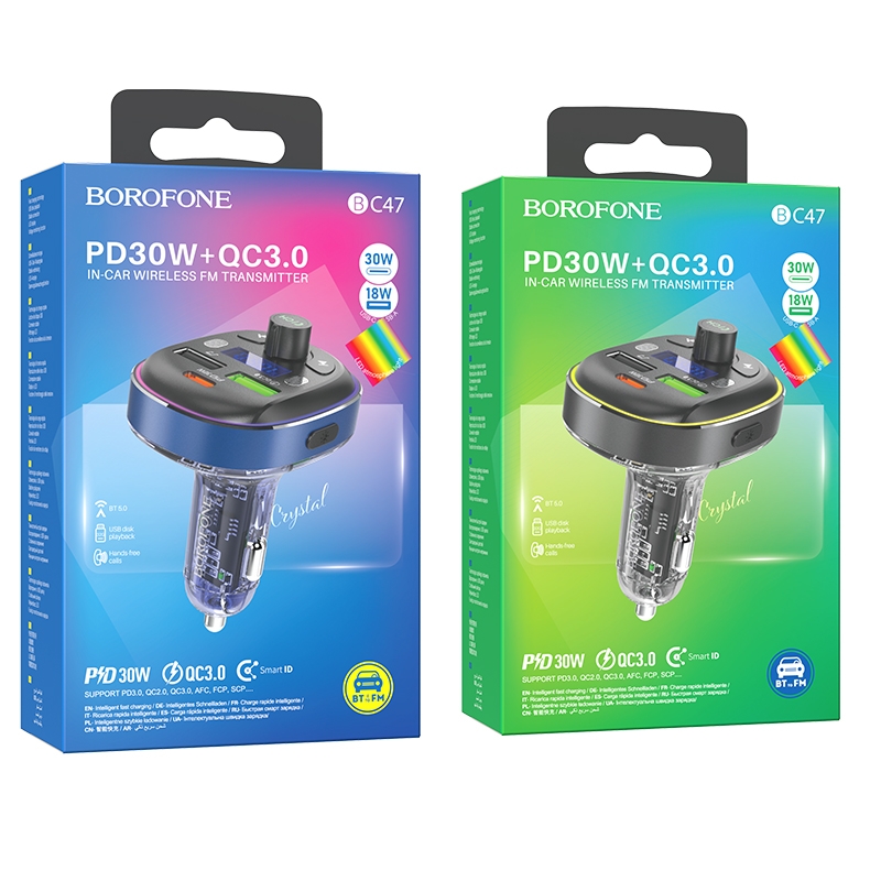 FM модулятор / зарядка в машину Borofone BC47 Might PD30W+QC3.0