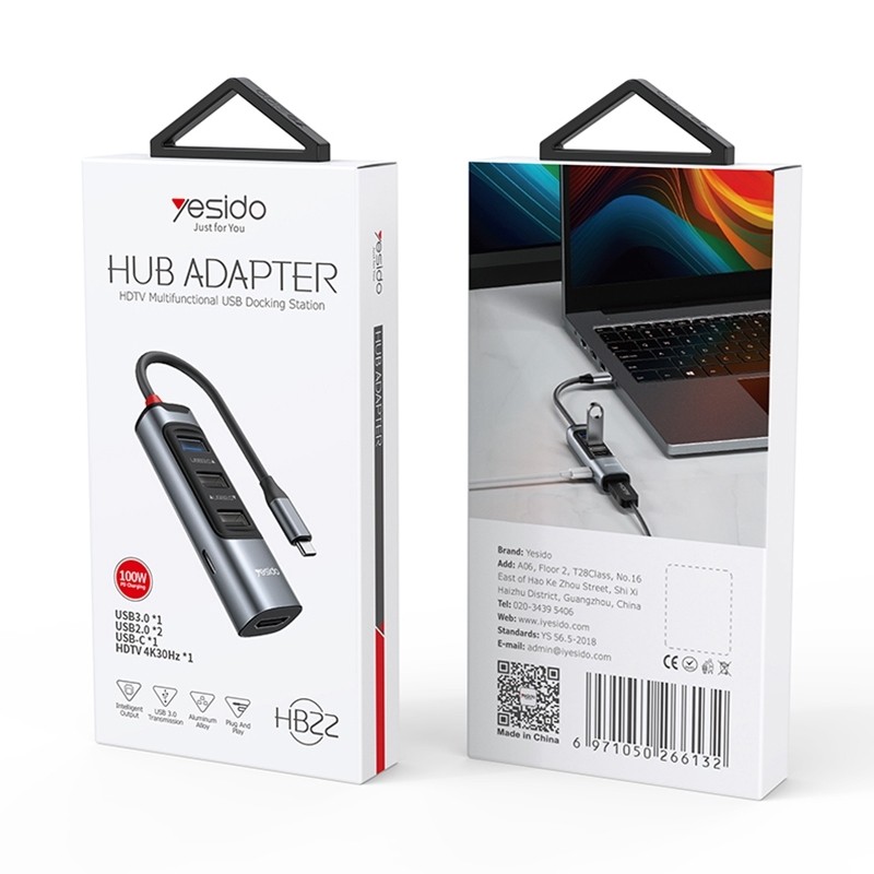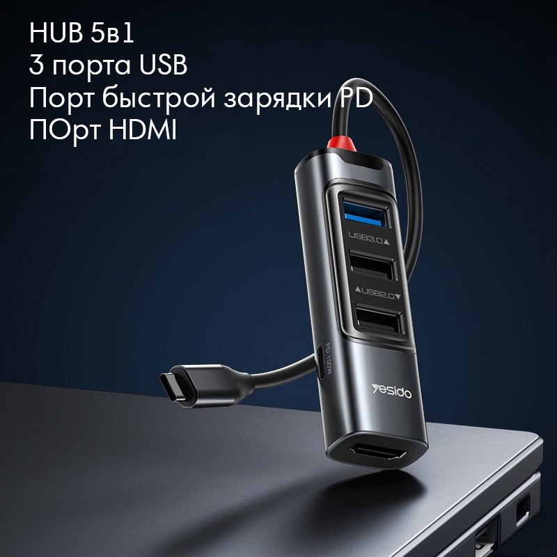 Yesido HB22 Многофункциональный адаптер-концентратор док-станция 5 в 1 USB-C/Type-C