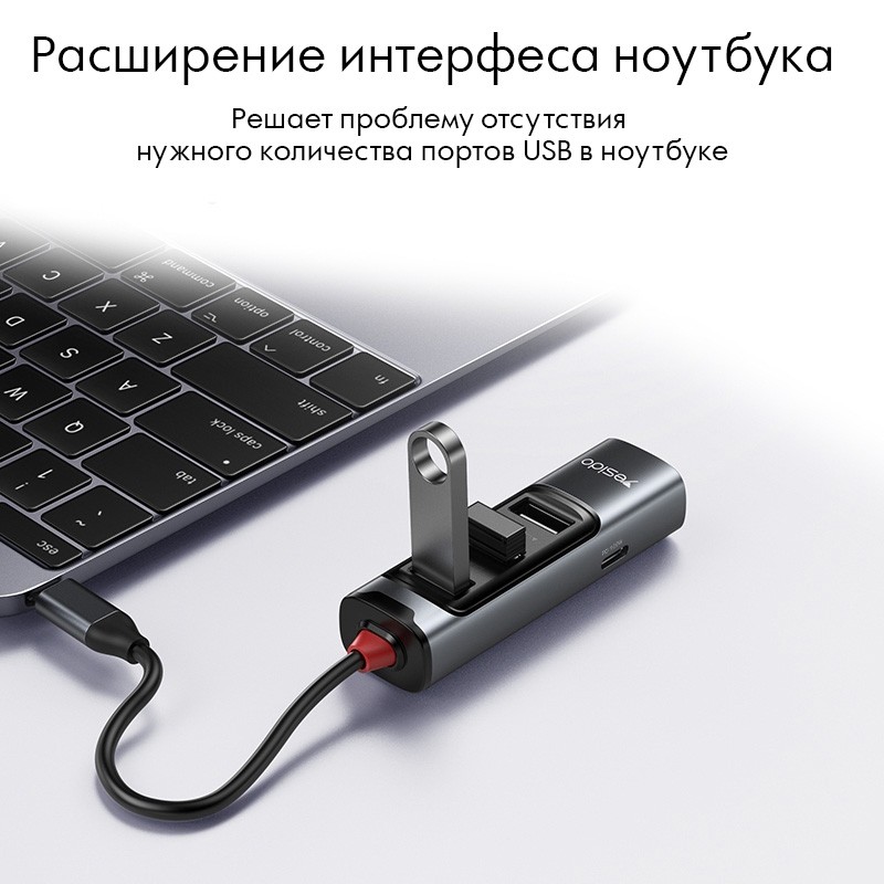 Купить кабель Type-C HUB для MacBook и iPad Yesido HB22 можно в розничных магазинах ГаджетПлюс