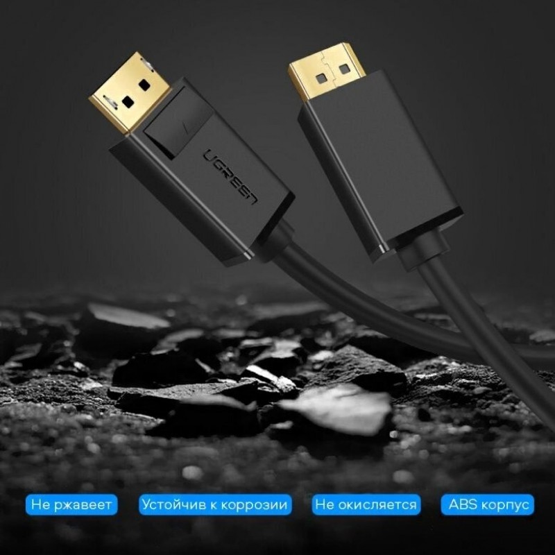 Кабель UGREEN DP102-10244, DisplayPort 1.2 (M) to DisplayPort 1.2 (M), 4K@60Hz; 2K@144Hz, силиконовый, круглый, 1m, Black