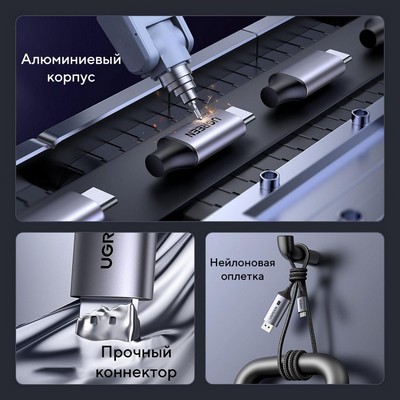 Высокоскоростной кабель для передачи видео с порта Type-C на вход Display Port Ugreen CM556-25157 7K-60Hz