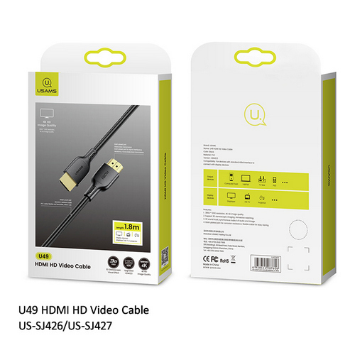 Кабель HDMI 2.0(2.1) USAMS US-SJ426 U49 1.8M, черный